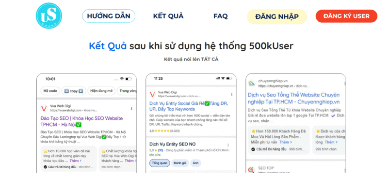 Trong cuộc đua chinh phục Top 1 Google, việc tận dụng hệ thống SEO USER hiệu quả chính là “vũ khí bí mật” giúp website bứt phá nhanh chóng và duy trì thứ hạng bền vững. Vậy nên Daotaoseouser đã phát triển hệ thống 500kuser.